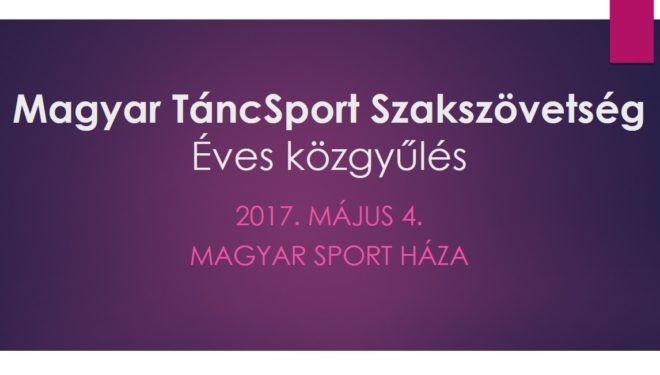 A versenytánc szakág versenysportjáért felelős elnökségi tag pozíciójára Rimányi Judit és Horváthné Krizsa Mária voltak jelölve Jenei Éva Evelin helyére. A választást 33 szavazóból 17 szavazattal Rimányi Judit nyerte.